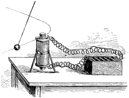Another application of the burning-glass is to obtain a record of the number of hours of sunshine in each6 day. You will understand the apparatus from Fig. 3; the lens is here replaced by a glass globe, which acts as a burning-glass. As the sun moves over the sky the bright spot of light also moves, and therefore burns its track on a sheet of paper marked with lines corresponding to the hours. When the sun is hidden by clouds the burning ceases, so by preserving each day the piece of paper, we have an unerring tell-tale, which shows us during what hours the sun was shining brightly, and the hours during which he was hidden. You see, the burning-glass is not merely a toy, it can be made useful in helping us to learn something about the weather.