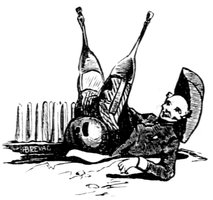 Il dérange les draperies dont on l’affuble, afin d’avoir le plaisir de les replacer; il 4 a trop chaud ou trop froid; il est enrhumé du cerveau, et se mouche continuellement. Ficelles!