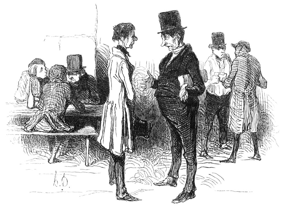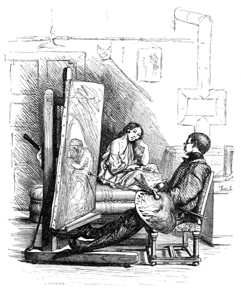 Les jeunes modèles chantent, jouent la comédie bourgeoise, se disent entretenus par des femmes de députés, et sont toujours sur le point d’être reçus à l’Opéra-Comique. Les modèles à barbe font des commissions et cirent les bottes; ce sont souvent d’anciens militaires, qui racontent la bataille de Champaubert, et crient: «Vive l’empereur!» quand ils ont bu.