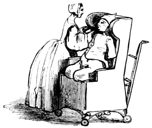 S’il pose assis, il se trouve mal à l’aise sur son fauteuil, et fait de son coussin le sujet d’une enquête de commodo et incommodo; si son bras est soutenu en l’air par une corde qu’un anneau retient au plancher, il se plaint qu’elle lui meurtrit outrageusement le poignet; si l’on a placé sous son pied une bûche appelée talonnière pour lui tenir la jambe en raccourci, il gémit du contact de l’écorce raboteuse avec son orteil. Ficelles!