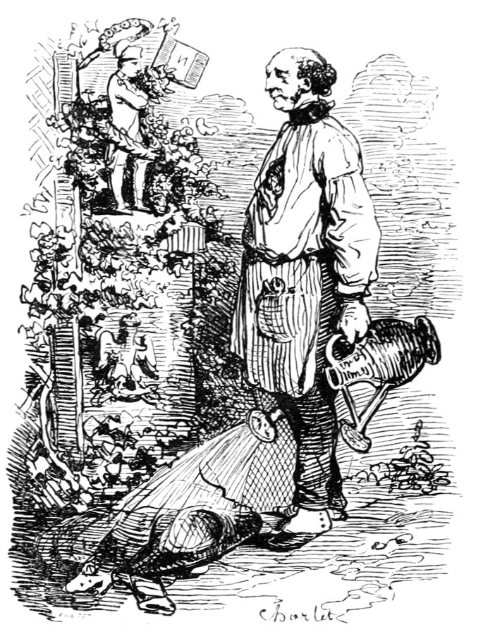 «Ah! monsieur, dit-il, l’art a bien dégénéré! Il fallait le voir du temps de Napoléon! je posais pour M. David, pour M. Guérin, pour M. Girodet-Trioson; c’étaient là de fameux peintres! comme ils soignaient la ligne et les contours! comme ils calculaient les proportions! ils ne faisaient rien de chique ou d’après le mannequin; ils prenaient toujours le modèle; ils le copiaient, ils l’étudiaient du matin au soir; aussi leur peinture était-elle fameusement blaireautée, unie comme une glace. Dans ce temps-là, nous ne pouvions fournir aux demandes des artistes; mais aujourd’hui, le métier ne va plus; tout est perdu!»