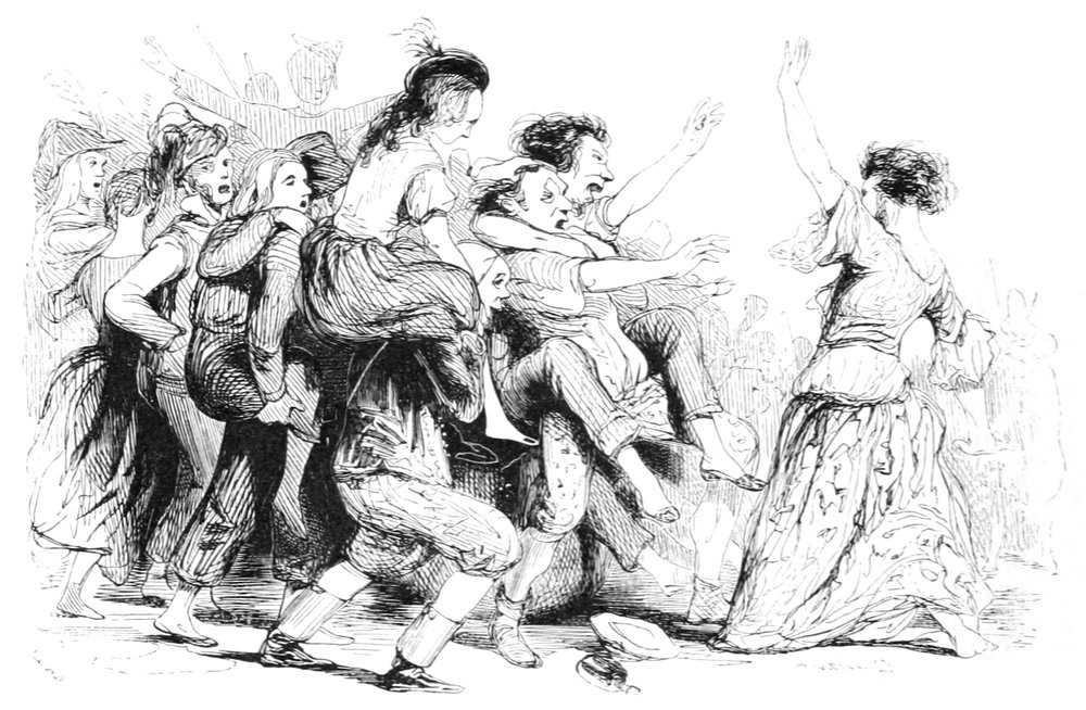 «Que vois-je! s’écriait une élégante qui montait paisiblement sans songer au spectacle inconvenant qui l’attendait au passage.