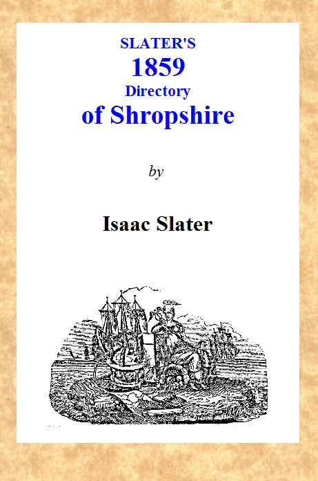 The Project Gutenberg eBook, Slater's [1859] Shropshire Directory, by Isaac Slater This eBook is for the use of anyone anywhere in the United States and most other parts of the world at no cost and with almost no restrictions whatsoever. You may copy it, give it away or re-use it under the terms of the Project Gutenberg License included with this eBook or online at www.gutenberg.org. If you are not located in the United States, you'll have to check the laws of the country where you are located before using this ebook. Title: Slater's [1859] Shropshire Directory Author: Isaac Slater Release Date: November 18, 2019 [eBook #60729] Language: English Character set encoding: ISO-646-US (US-ASCII) ***START OF THE PROJECT GUTENBERG EBOOK SLATER'S [1859] SHROPSHIRE DIRECTORY***