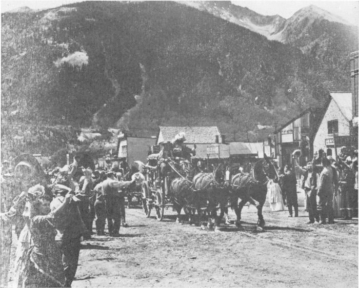 Otto Mears, known as the Pathfinder of the San Juan, laid out a system of toll roads through the San Juans, branching in all directions from Silverton—up the river to Eureka and Animas Forks, over the Ophir Range, down the San Miguel River to the Dallas, across to Telluride and again across to Rico and Rockwood, and from Silverton to Ouray—four hundred miles, mostly toll. Like networks these roads were, and are, of untold benefits. In 1875 Mears was paid the grand sum of $600.00 for building a road up the Animas River from Silverton to Howardsville, Eureka, Animas Forks, and Mineral Point, apportioned as follows: Silverton to Howardsville, $150.00; Howardsville to Eureka, $150.00; and from Eureka to Mineral Point, $300.00.
