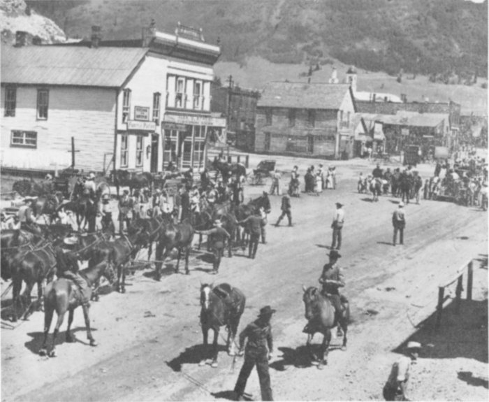 When trees were no longer available, Squire (W. D.) Watson selected a solid stump at the top of the incline, and lowered the wagons by means of a snubbing rope. The price was $2.50 for about two-hundred feet, which made it pretty profitable. The summer travel was from five to twenty wagons daily. The freight rate at this time from Del Norte to Silverton was 30 dollars a ton, and remained so until the coming of the railroad.