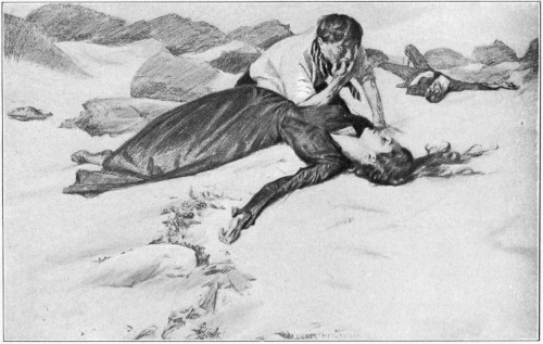After a while I turned and looked back. My eyes had cleared a bit, but what I saw made them red again. Tess was not alone on the Ness. John was with her. The two stood out strong in the last of the yellow sunshine against a cloud-bank on the far edge of the sky. I suppose that Tess being hurt that way for him brought John to his bearings—making him love her the more for sorrow's sake, and for anger's sake making him ready to throw Grace Gryce over. Like enough he had been watching for his chance to get to her, waiting till I was gone. Anyway, there he was—and I knew what he was saying to her as well as if I'd heard the words. It is no won[209]der that the blood got into my eyes again as I started back along the path. But I did not go far. Somehow I managed to pull myself together and turn again. What I had to settle with John Heath could be settled best when he and I were alone.