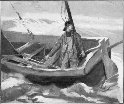 As to my own sailing seaward—I seeing the storm-signals and knowing the meaning of them—I have no more to say than that I was hot for a fight with anything that morning, and didn't care much what I had it with or how it came. Anybody who knows how to sail a boat, and to sail one well, knows what joy there is in getting the better of foul winds and rough seas for the mere fun of the thing; but there is still more joy in a tussle of that sort when you are in a towering rage. Then you are ready to push the fight farther by taking more and bigger death-chances: since a man in bitter anger—at least in such bitter anger as I was in then—does not care much whether he pulls through safely or gets drowned. And so I went on my course seaward, on that soft wind blowing more and more lazily, until the coast line was lost[213] in the water behind me: knowing well enough, and glad to have it that way, that the wind would lull and lull until it failed me, and that then I would get a blow out of the northeast that would give me all the fight I wanted, and perhaps a bit to spare!