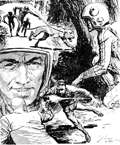 He showed Dan how to use the glider, and several other new items of equipment, then frowned and sat back. "The worst of this is, we don't know exactly what to expect on the planet. Some big organization could even be trying to take over the planetary government. If so, a lot will depend on what stage things are in when you land. To give you as much chance as possible, your body has been carefully restructured to give you exceptional strength and endurance. The neuro-conditioning lab has recreated in your nervous system the reflexes of one of the deadliest agents ever known. Don't be surprised if you perform certain actions almost before you're aware of your own intentions. It has to be that way to cut down the risks."