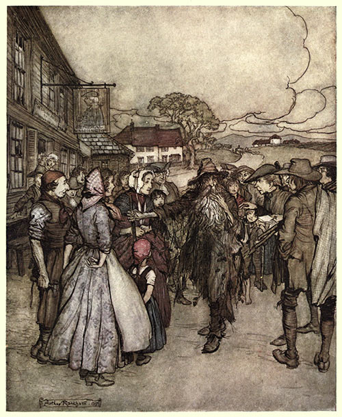 All stood amazed, until an old woman, tottering out from among the crowd, put her hand to her brow, and peering under it in his face for a moment, exclaimed: “Sure enough! it is Rip Van Winkle—it is himself! Welcome home again, old neighbour. Why, where have you been these twenty long years?”