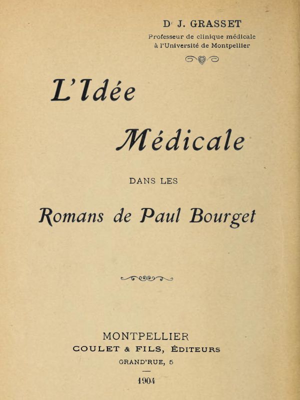 1. Etrange, à première vue, doit vous paraître le choix de Paul Bourget pour étudier l'idée médicale dans une grande œuvre littéraire.