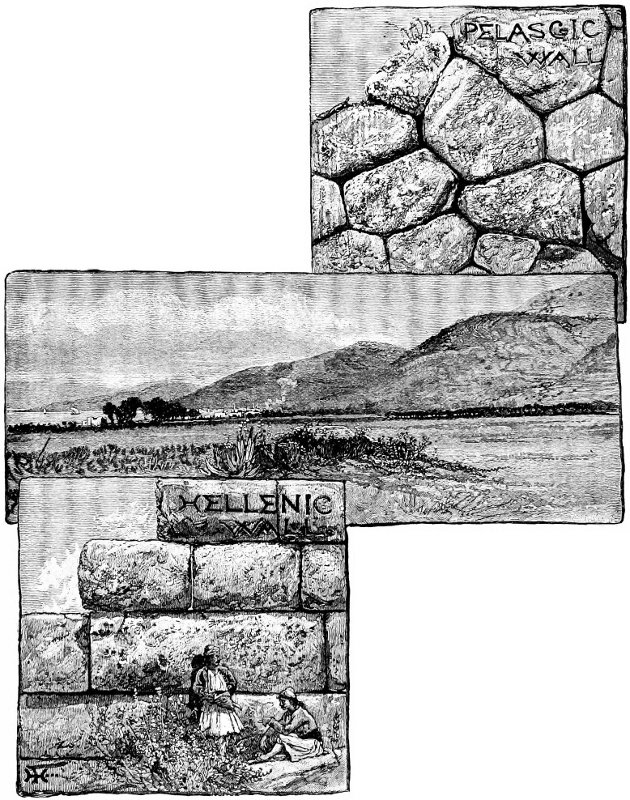The Odyssean topography is greatly confused to the modern traveler by the fact that the Homeric city undoubtedly stood at the northern end of the island, and far remote from the modern city as well as from the landing-place of Ulysses and the pig-pens of Eumæus. The view from the grotto gives us, at the left, a bay of which Vathy and Phorcys are tributaries. 31 This cuts the island nearly in two, a narrow ridge of rock only connecting its two great masses. On the north is the site of the Homeric city, as I shall presently show; but on the south are the Raven’s Cliff and the fountain of Arethusa, together with an ancient ruin known by the people as the “Castle of Ulysses.” These ruins are of the earliest form of Pelasgic, commonly named Cyclopean, though there is no justification for any distinction between the “Pelasgic” and the “Cyclopean,” or any proper distinction of styles, as they run into each other, from the form shown at “Ulysses’ Castle” to the most elaborate and carefully fitted polygonal which we shall find at Samé on the opposite shore of Cephalonia. The walls of Ulysses’ Castle are of great extent, and portions still remaining near the summit are well preserved, some fragments being nearly twenty feet high. It must have been the work of a powerful tribe and a great stronghold. Seen from the sea, it shows on a sharp conical rock precipitously trending down to the shore. The Odyssey in no manner makes allusion to this, either as city or as ruin. Ulysses passes very near it going south, leaving it on the right, apparently ignoring its existence. This makes it tolerably clear that it had been so long in ruin that it was in no way to be connected with the Odyssean dynasty or colonization even, or that it was constructed after the Homeric epoch. The latter hypothesis is untenable, because we find in many parts, especially in the Argolid, ruins clearly contemporary with this, which are in the Hellenic traditions regarded as the work of a vanished and semi-divine race of giants, the Cyclopes or the “divine Pelasgi;” while, of the Homeric epoch, as distinguished from the Pelasgic, which preceded it, and the Hellenic, which followed it, we have no recognizable remains, and the cities known to have existed, such as the Ithaca of Ulysses, have left no ruin durable enough to show in our time. This indicates a state of civilization in which the great necessity of strong 32 walls as a defense had passed, or that, by the use of cement, walls were made so light in structure that they were efficient for the day, but perished utterly in the intervening time, which again is an untenable hypothesis, because we find cement used nowhere in Greece in work known to be earlier than the third century B. C. I leave the question of the identity of the Odyssean epoch with that of the composition of the poem at present untouched. I am dealing only with the poem which philologists suppose to have been composed about 850 B. C. That the author knew Ithaca perfectly, I think we shall see, and that consequently the ruins of the Pelasgic epoch, when not continuously inhabited (as were Nericus and Samé, the former of which Laertes conquered, and the latter of which sent the largest deputation of “kings” as suitors for Penelope, the foundations of both being Pelasgic), were already so lost in the twilight of prehistory as to be without any meaning to the author of the Odyssey. The city whose ruins are now called the Castle of Ulysses was as unknown to the epoch of Homer as to ours. No one in the whole action of the Odyssey goes in or out of its gates, or turns aside from his path to speak of or visit it. “Kings” were as common as rascals in those days, but that two important cities should exist contemporaneously in the small island of Ithaca, and that the people of Ulysses should live in one, pasture their hogs on the territory of the other, and ignore its existence, is impossible. This does not prevent Schliemann from identifying the house walls, which remain to a small height, with the pig-pens of Eumæus, or a huge stump near the citadel, with the tree from which Ulysses had made his bed (Ithaca, Peloponnesus and Troy).