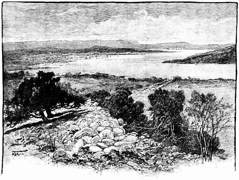 The claim of the city of Corfu to be the site of the ancient Phæacia rests on nothing but the fact that it is the only city in the island; but the ever-tranquil bay on which it lies, and the fact that Ulysses, instead of searching for a place where he could land, would rather have had to search for a place where he could not, shows conclusively that no part of the eastern coast is entitled to the honor. The “one-gun battery,” where local tradition places his landing, is perhaps the least likely point, as no running stream is to be found near there. The lake, which is now suggested as the tranquil water in which Ulysses came to land, must then have been much larger than at present, and now in nowise resembles a river: it is the half-filled arm of the sea into which a wide basin of marshy land has been for centuries draining, but into which no watercourse leads, and the view seen from above the “one-gun” needs scarcely a commentary to show its entire incompatibility with the Odyssey.