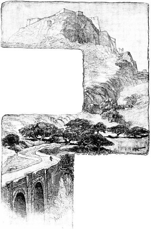 There was a pretty little valley on our way, the only arable or fruitful land in this part of the island; all else was bare and bleak. A few tough-lived shrubs, broom and gorse, arbutus, and some others I did not know, wring a scanty subsistence from the clefts between the rocks, and in a mass of almost unmitigated limestone was cloven a ravine. The roughness of Ithaca was proverbial even in Homeric days, since Athena, while disguised as a shepherd, replies to Ulysses, “If it [Ithaca] is rocky, if it breeds not horses in its moderate space, it is not quite barren,” etc. One might well select this scene as one of tranquil beauty, with the faint glimpses of the dreamy inner sea above its valley distance, and the golden grain-fields as I saw them, interspersed with vineyards and olive-orchards.