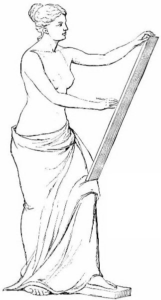 Millingen, in 1826, started his theory that it was a Victory holding a shield in both hands. I am quite convinced that many who have started other theories would have adopted this if they had not been anticipated in proposing it. The vanity of archæological research, and eagerness to propose something new is so dominant in most archæologists that 94 they exercise more ingenuity to advance some new theory than would be requisite to show the validity of an old one. And the statue of Melos has been preëminent in fruitfulness of theories of all qualities and grades of improbability. Millingen, however, supported his theory by a similar statue known as the Capuan Venus, a reproduction, I believe, in Roman times, of the Melian statue, probably through some other intermediate copy or reproduction, as the sculptors of the Capuan statue could not have seen the Melian. The arms are a modern and abominable restoration. Here, again, I must, in passing, protest against the attribution to the Venus type of all nude or semi-nude statues. There is nothing in the Capuan which indicates that it was intended as a Venus. Millingen quotes Apollonius of Rhodes as describing a statue of Venus looking at herself in the shield of Mars, which she herself is holding, but this is no evidence of the type correspondence, and the gravamen of the matter lies precisely in the diversity of the type from the recognizable Venuses. But the Capuan is too far in type and treatment from the Melian to serve as definite argument. Such as it is, an item in the discussion, I will not exaggerate its importance, though I believe it to be a far-away recollection of the Melian statue.