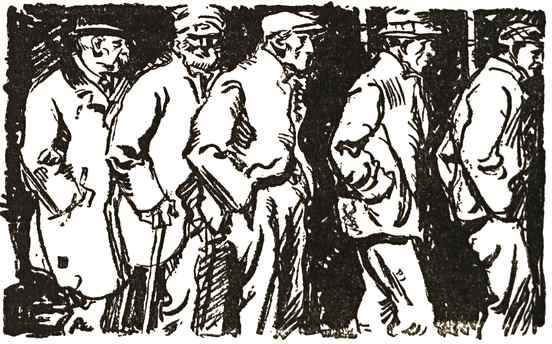 I once protested to an artist friend who chanced to be sketching a line of these, carrying signs, that it was a pity from the individual’s point of view, as well as from that of society itself, that such things must be. But he did not agree with me. “Not at all,” he replied. “They are mentally and physically pointless, anyhow, aren’t they? They have no imagination, no strength any more, or they wouldn’t be carrying signs. Don’t you think that you are applying your noble emotions to their state? Why shouldn’t they be used? They262 haven’t your emotions—they haven’t any emotions, as a matter of fact, or very rudimentary ones, and such as they have they are applying to simpler, cheaper things than you do yours. Mostly they’re dirty and indifferent, believe me.”