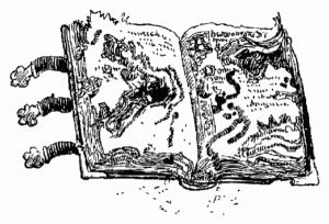 L'habit, ou plutôt ce qui restait de l'habit de ce volume, montrait la corde; le dos, recouvert encore par places d'un papier à fleurs bleues, laissait passer et pendre les ficelles du brochage; les feuillets de garde n'existaient plus, et les coins de pages usés et jaunis se roulaient et se recroquevillaient lamentablement; et cependant, sous son désastreux aspect de personne distinguée tombée dans le malheur, ce dernier représentant des Muses gracieuses d'avant le cataclysme conservait quelque chose de particulier et de point banal.
