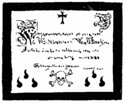 Il y a de cela nombre d'années déjà.—C'est en recherchant il y a peu jours, au fond d'un carton d'épreuves d'eaux-fortes, des documents indispensables à un travail urgent, que ces macabres photographies m'apparurent et que, me remémorant l'aventure invraisemblable que nous conta naguère le grand seigneur viennois, il me prit fantaisie d'écrire le récit qu'on vient de lire. L'authentique figure ici reproduite dans le texte est celle du comte Bernard d'Harcourt, gentilhomme normand, blessé mortellement à la bataille de Nördlingen, puis décapité et précieusement embaumé par les soins du docteur Eobanus Bolgnuth de Nuremberg.