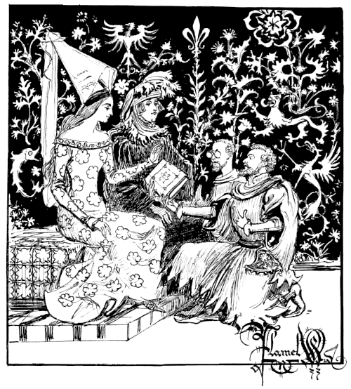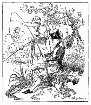 Il est parti; il s'égare mélancoliquement dans le parc et baisse la tête en passant devant le triomphant Cupidon du temple de l'Amour. Bourgogne-Cavalerie est bien ému; se peut-il, fier dragon, qu'un simple trait de l'archer malin vous désarçonne ainsi et vous mette aussi complètement l'âme à l'envers?—Il revient le cœur troublé vers la charmille et sursaute en trouvant Sylvie en train de crayonner la réponse: