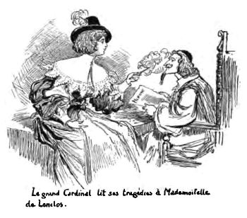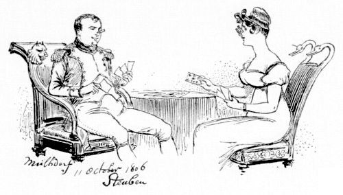 Sylvie a fait sans doute un peu de toilette pour le souper, car M. de Coudray, revenu près d'elle, se penche au-dessus de son fauteuil et lui souligne ces vers de l'Almanach: