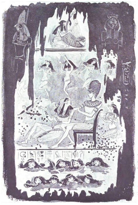 Car, vous le savez assurément, ce n'était guère qu'en théorie que chaque Égyptien pouvait revendiquer le droit d'une maison éternelle, avec ses chambres diverses, ses décorations et sa table d'offrande; en réalité, les morts de la petite classe étaient, comme aujourd'hui, vivement dépêchés vers des trous d'oubli. On les enfouissait un peu au hasard dans des fissures de montagnes, au fond de puits communs ou dans la profondeur de vieilles tombes violées et abandonnées. Les gens de condition seulement avaient les honneurs d'une architecture spéciale, des cercueils à leur taille, des peintures symboliques, des scarabées faits de matières précieuses et des figurines de Phtah, d'Osiris, d'Anubis et d'Hathor.—Or Robert Magrin ne recueillit d'abord que d'infortunés prolétaires qu'on ne songeait même pas à dépouiller de leurs bandelettes.