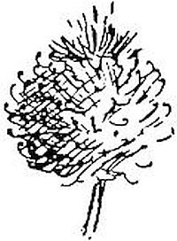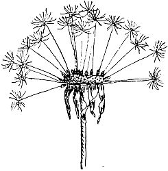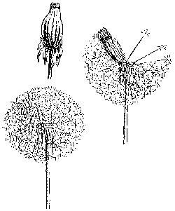 The plumes do not open out until the seed is ready to be blown away, and the akenes do not stand pointing out in all directions until the time to fly has come. Before that they are all packed closely together.