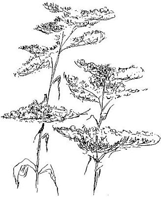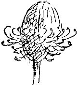 The top of the dandelion stem is a flat cushion, and the little akenes, when the seeds are ripe, stand on it, [7]pointing out in different directions so there may be room for every one with its spread-out plume.