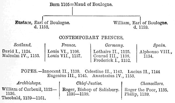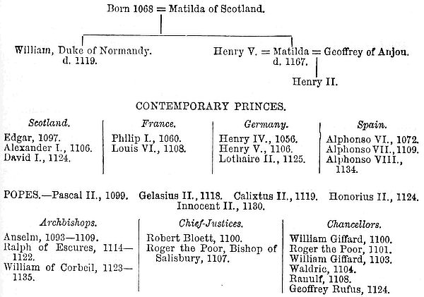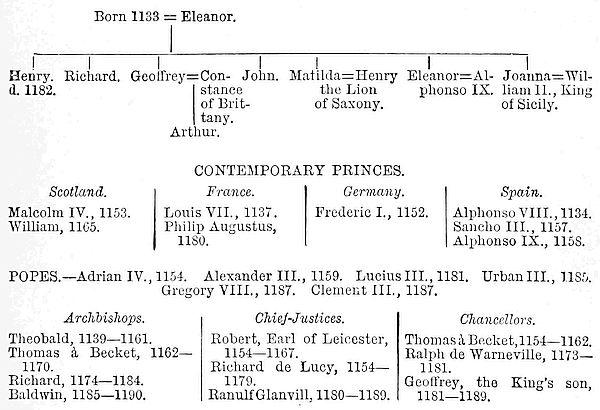 Dr. Giles’ Collection of the Letters of Becket, Foliot, and John of Salisbury. Gervais of Canterbury till 1200 (Twisden’s Decem Scriptores). Benedict of Peterborough, 1169-1192, and Roger of Hoveden to 1201, with Stubbs’ Prefaces in the Rolls’ series. William of Newbury, to 1198 (English Historical Society). Lord Lyttleton’s Life of Henry II.