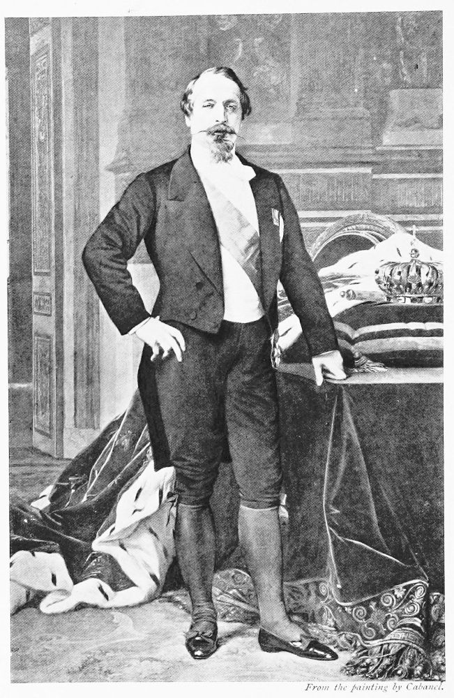 At the time of which I am speaking—October, 1868—Napoleon III. had just completed his sixtieth year. In spite of the agonies occasioned by the painful disease from which he was suffering, he retained his good looks, and notwithstanding his small height and the largeness of his head, which, compared with the size of his body, would have been ridiculous in any other person, he presented a most dignified appearance, and bore himself like a Sovereign born to the purple would have done. When he chose, the expression of his face was charming, and the eyes, which he always kept half closed, had a dreamy, far-away, mysterious look that gave them a peculiar charm. He spoke slowly, as if carefully weighing every word he uttered; but what surprised one when talking with him for the first time was a German accent in{4} speaking French—a habit retained from his early days spent in Switzerland—from which he could not rid himself, in spite of all his efforts, as well as those of M. Mocquard, his faithful secretary and friend, who, so long as he lived, gave him lessons in elocution. I believe that the slowness with which Napoleon III. expressed himself must be attributed to that circumstance more than anything else. But it is a fact that sometimes it had the effect of irritating those with whom he was engaged in conversation; they never knew what he was going to say next, and ofttimes gathered the impression that some ulterior motive actuated his speech.