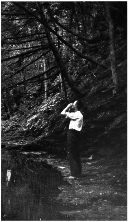 Hitherto broiling and roasting had been my sole means of cooking food, but now, having remembered that Joe had once showed me how to boil water in birch bark, I made a rude pot of this material, placed water and fungus within, and set the whole over a bed of hot coals covered with ashes. The bit of fungus to be broiled soon shriveled up and was transformed into a leathery-like material, tasteless and useless, while the piece roasting in the coals sputtered and sizzled, and might as well have been a bit of pine bark at the end of a few minutes. Both of these methods were undoubtedly failures, and I watched with some anxiety the piece boiling in the birch-bark pot. When it had boiled for some minutes I fished a bit out and, as soon as it had cooled, proceeded to taste it. Much to my joy, it had quite lost its musty, woody flavor and was as sweet, nutty, and palatable as a boiled chestnut, and I at once drew forth all that remained in the pot and dumped in all I had left. Words cannot express the satisfaction I felt at thus having discovered a source of vegetable food which I could gather as I traveled along and which would assure me a supply of provisions without the trouble and labor of trapping animals, catching fish, or hunting frogs and mussels.