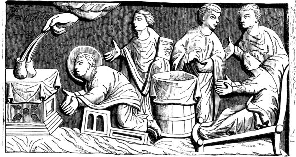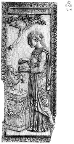 The subjects sculptured on the outside of diptychs of this kind generally also give another and a sufficient distinction, being perhaps [Pg 110] some domestic scene or a story from a romance, as upon combs or mirror cases. But this is not always so: for writing-tablets occasionally are found with subjects taken from the Holy Scriptures.