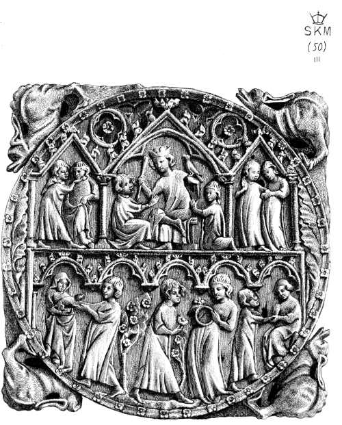 | IVORY CARVING. CIRCULAR MIRROR COVER. DATE 1300-1330. | 74 |