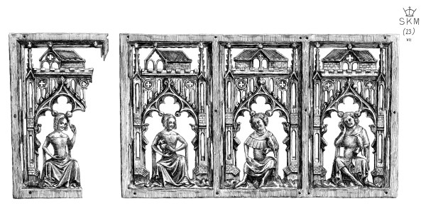 | One leaf of a diptych in very high relief; fourteenth century | 100 |