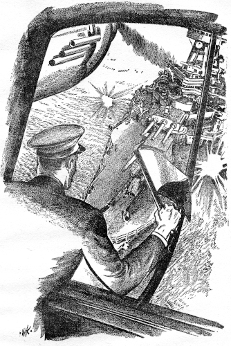 Nelson cursed savagely and tore out of the room. He raced up the ladder to the bridge, tugged at Herr Kommander Brandt's sleeve.