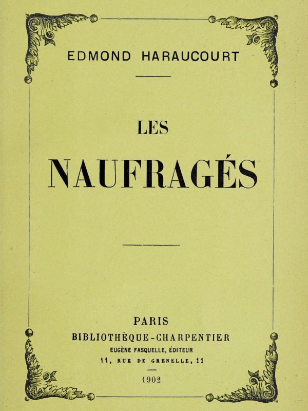 The Project Gutenberg EBook of Les naufragés, by Edmond Haraucourt This eBook is for the use of anyone anywhere in the United States and most other parts of the world at no cost and with almost no restrictions whatsoever. You may copy it, give it away or re-use it under the terms of the Project Gutenberg License included with this eBook or online at www.gutenberg.org. If you are not located in the United States, you'll have to check the laws of the country where you are located before using this ebook. Title: Les naufragés Author: Edmond Haraucourt Release Date: February 23, 2020 [EBook #61489] Language: French Character set encoding: ISO-8859-1 *** START OF THIS PROJECT GUTENBERG EBOOK LES NAUFRAGÉS *** Produced by Clarity, Laurent Vogel and the Online Distributed Proofreading Team at http://www.pgdp.net (This file was produced from images generously made available by The Internet Archive/Canadian Libraries)