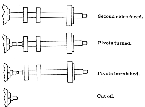 This comparative study of the practice of different factories will prove very interesting, as the movement comes to the student after a period of prolonged and generally severe use, which is calculated to bring out any existing defects in construction or workmanship; and having all makes of clocks constantly passing through his hands, each exhibiting a characteristic defect more frequently than any other, he is in a much better position to ascertain the merits and defects of each maker than he would be in any factory.