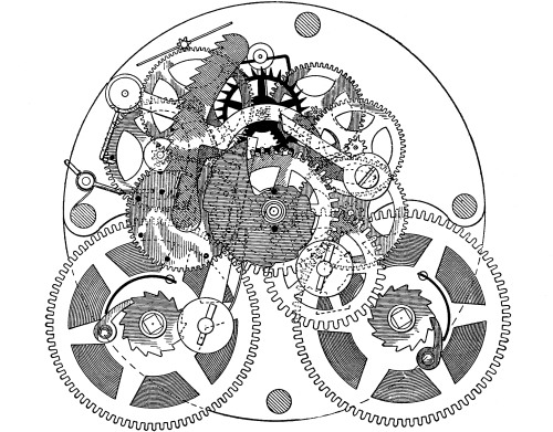 We have used the word “compile” advisedly. The writer has no new ideas or theories to put forth, for the reason that the mechanism we are considering has during the last six hundred years had its mathematics reduced to an exact science; its variable factors of material and mechanical movements developed according to the laws of geometry and trigonometry; its defects observed and pointed out; its performances checked and recorded. To gather these facts, illustrate and explain them, arrange them in their proper order, and point out their relative importance in the whole sum of what we call a clock, is therefore all that will be attempted. In doing this free use has been made of the observations of Saunier, Reid, Glasgow, Ferguson, Britten, Riefler and others in Europe and of Jerome, Playtner, Finn, Learned, Ferson, Howard and various other Americans. The work is therefore presented as a compilation, which it is hoped will be of service in the trade.