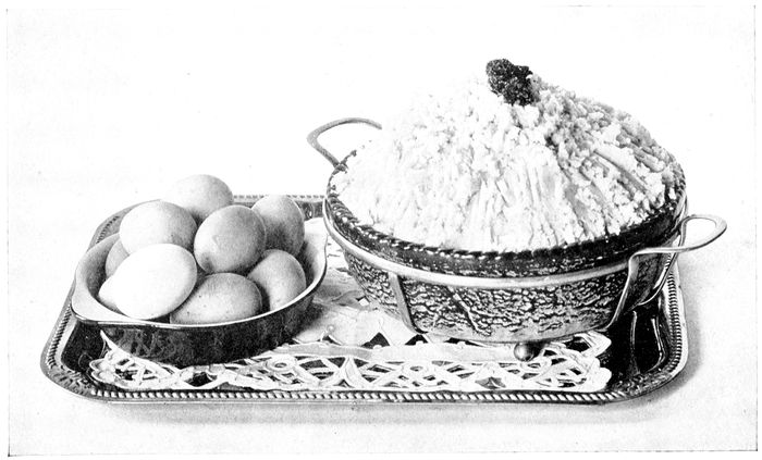 Pour into hot marmites. Have ready the stiffly 22beaten whites of the eggs, put a spoonful of the egg on the top of each marmite, and sprinkle over the chopped pistachio nuts.