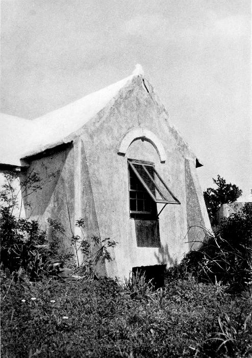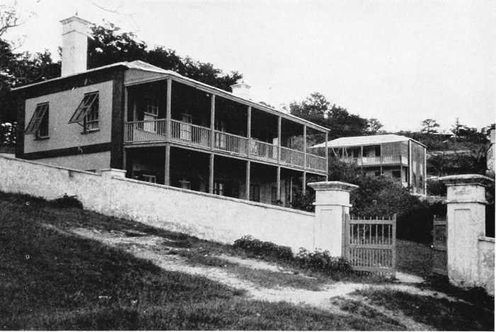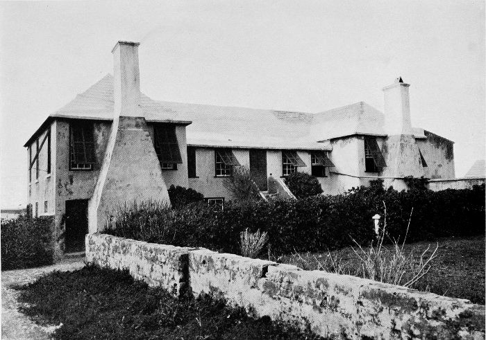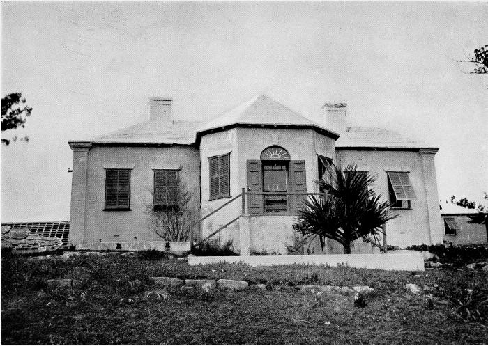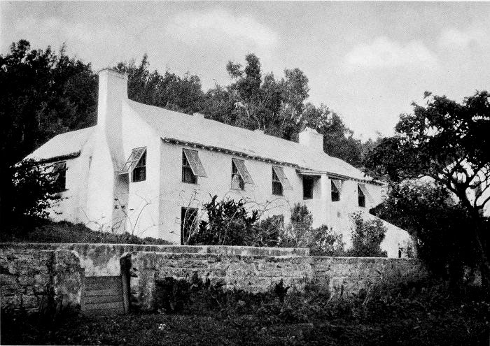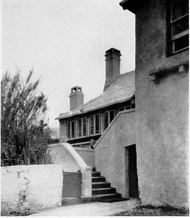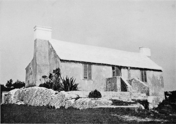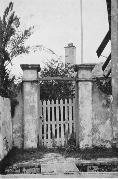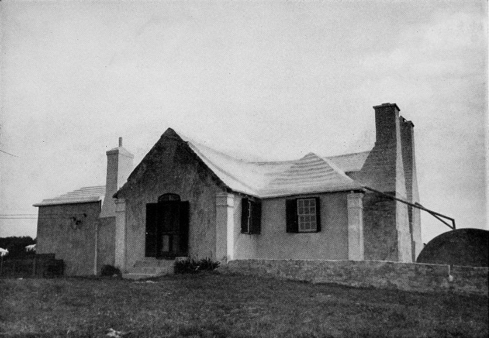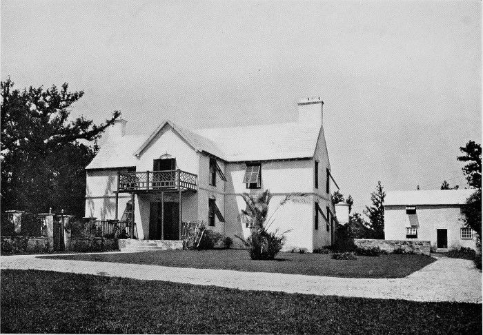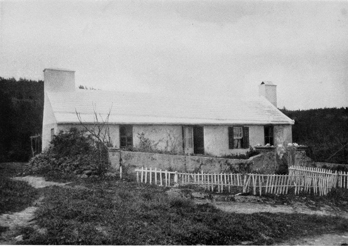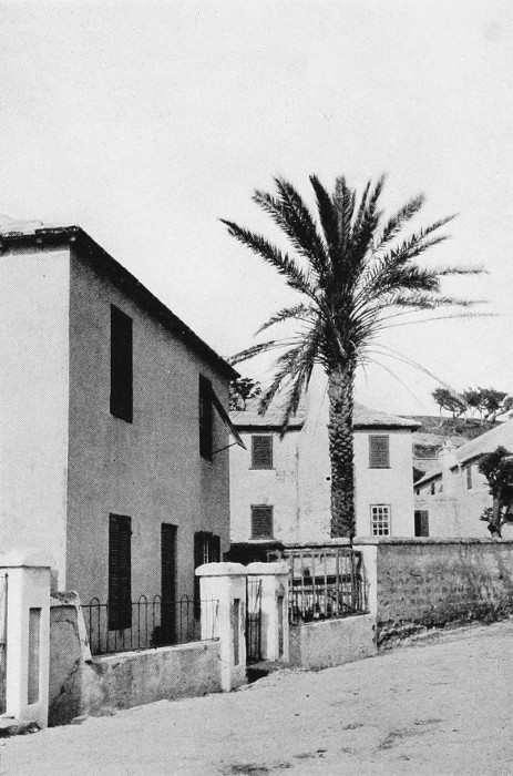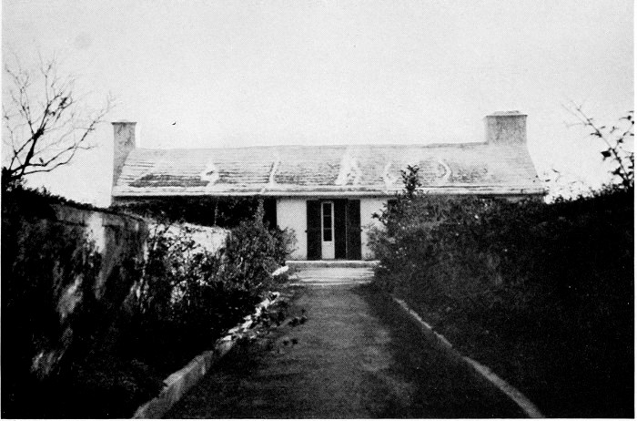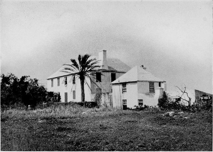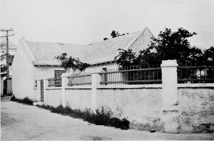 To those who are familiar with Bermuda and the houses there, these colorless photographs may be but sorry representations of the actuality, and can only serve to stimulate memory. White, or softly tinted houses with weathered green blinds and doors, frequently buried in luxuriant foliage and blossoms of vivid hues, with glistening white roofs silhouetted against intensely blue sky, or backed against the dull green of red trunked cedars, through which may be glimpses of a turquoise sea, make a strong impression on the senses, but fail to register with the camera—even when held by a more experienced hand than that of the author.