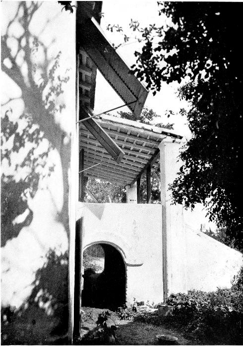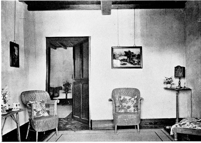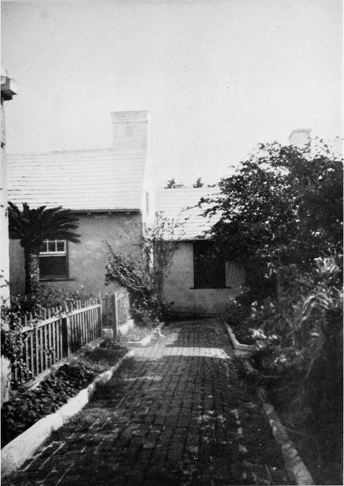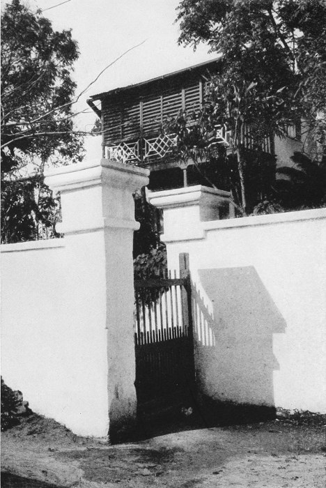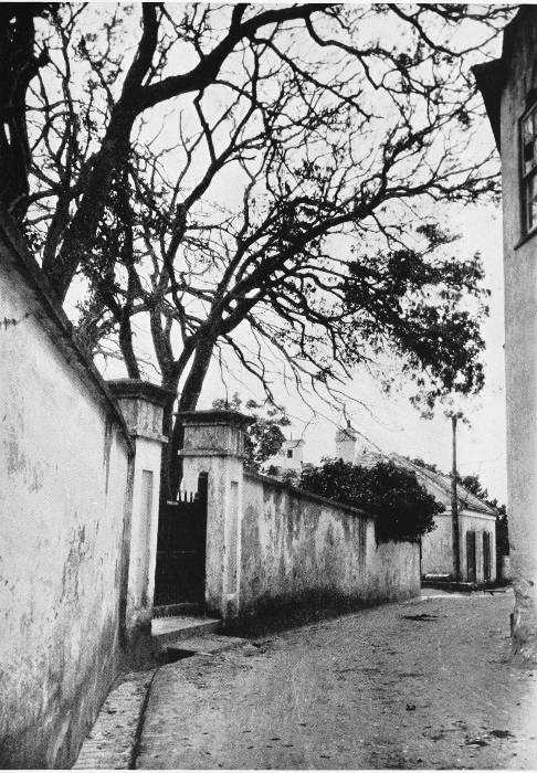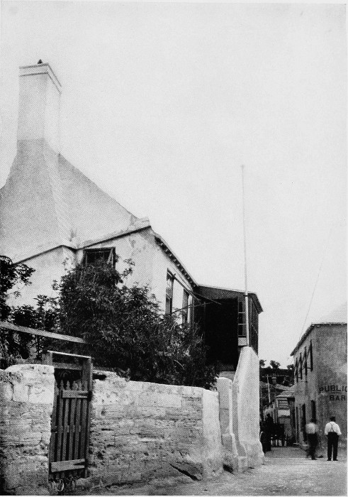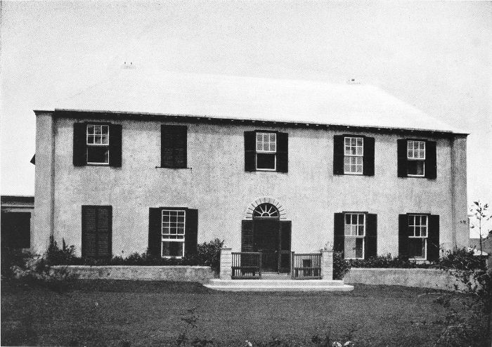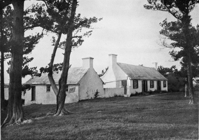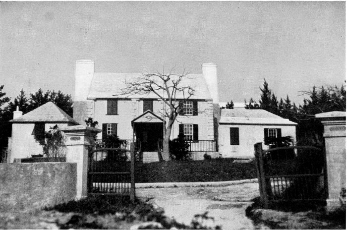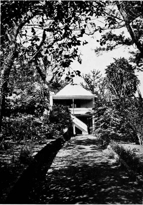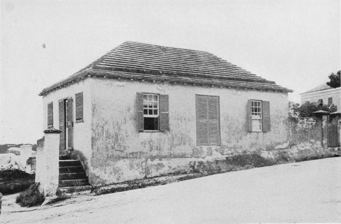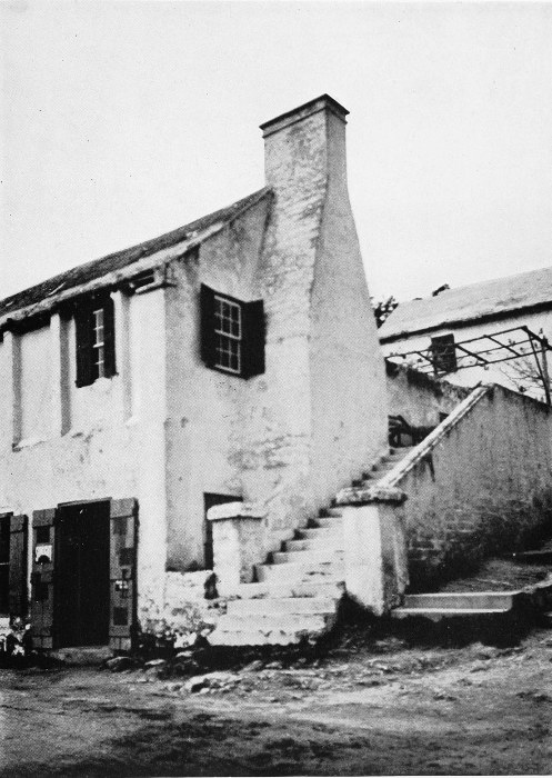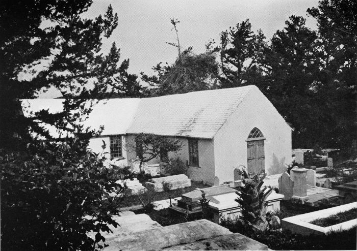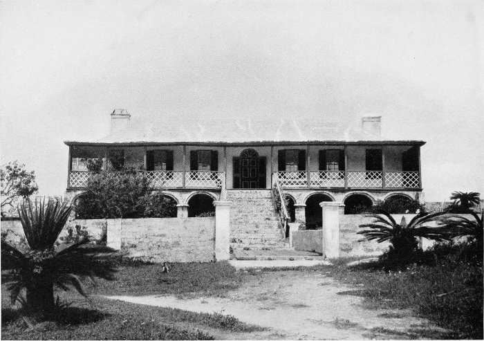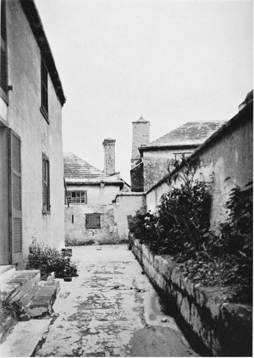To those who are familiar with Bermuda and the houses there, these colorless photographs may be but sorry representations of the actuality, and can only serve to stimulate memory. White, or softly tinted houses with weathered green blinds and doors, frequently buried in luxuriant foliage and blossoms of vivid hues, with glistening white roofs silhouetted against intensely blue sky, or backed against the dull green of red trunked cedars, through which may be glimpses of a turquoise sea, make a strong impression on the senses, but fail to register with the camera—even when held by a more experienced hand than that of the author.
