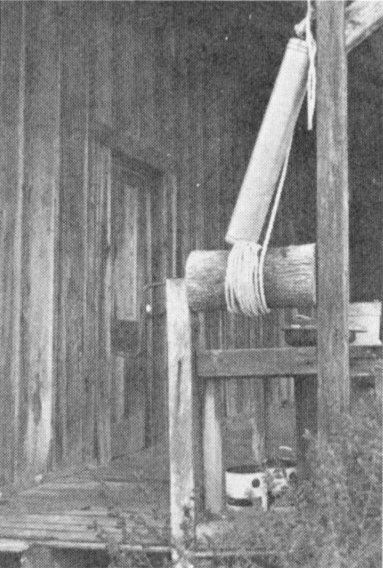 Before “running water” was available, it was considered a great convenience to have an additional well in the house. These wells were usually on a front porch and had a narrow cylinder for drawing water (Fig. 15).