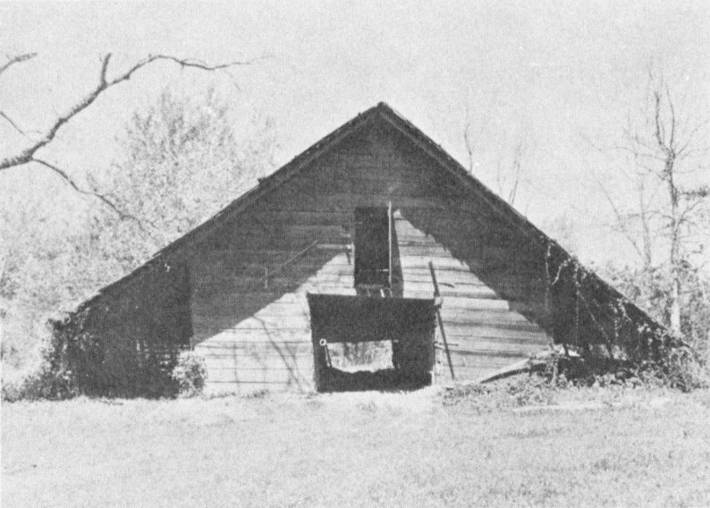 Although roof styles vary, the barn type used almost exclusively in the Piney Woods is the transverse-crib barn. Henry Glassie, folk historian, has theorized that the transverse-crib barn developed in the southern Tennessee Valley. The Piney Woods settlers came from that area in large numbers. Roof styles include the gambrel and the pitched roof, but the most prevalent style is the A-roof (Figs. 30-32).