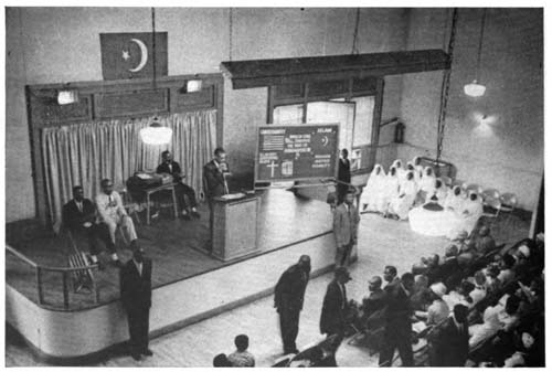 This sermon, or “teaching,” is the high point of the service, what everybody has come to hear. An air of expectancy runs through the crowd as the moment to begin the teaching approaches. This is stock drama for the Black Muslims whether the meeting be a national affair where Elijah himself is to speak or a local meeting where the temple minister is to teach.