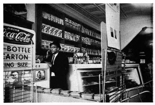 The restaurants—like the Black Muslim homes—strictly adhere to Moslem dietary laws. Muslim sisters glory in their ability to prepare dishes that satisfy the traditional eating habits of the American Negro without violating these laws.[20] The best example of imaginative Black Muslim cooking is their famous bean pie, something of a gourmet’s delight in the Negro community. Negroes in New York have been known to come to Harlem from miles around just to buy a bean pie for the family table. The restaurants also serve as business headquarters for the movement; they are the distribution centers for Black Muslim newspapers and other periodicals, the place where one is invited to have a talk with a Black Muslim leader. Temple Number Seven Restaurant at 116th Street and Lenox Avenue in Harlem is where Minister Malcolm X holds forth: he can be seen there almost any time conducting the financial affairs of the movement and holding press conferences. Then, on a sign from one of his assistants, Malcolm bounds out of the restaurant to conduct temple service at Temple Number Seven, half a block away.