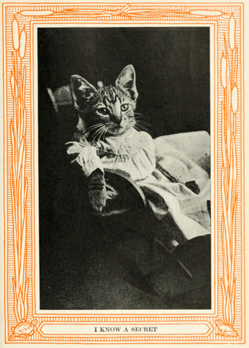 In one respect kittens take precedence over dolls. They are alive.[82] They must be treated kindly. They will not bear the abuse and neglect given to many beautiful dolls. They demand attention and companionship, and they return a real devotion for kindness and care. Therefore we love them, and especially do our children love them and delight in stories or pictures of them.