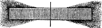 Weil der weiche Eisenstab wirklich durch den ihn umkreisenden electrischen Strom in einen Magneten verwandelt wird. Man nennt diesen Magneten einen Electromagneten. Durch sehr kräftige electrische Ströme kann man daher auch sehr kräftige Electromagnete erzeugen, die mehrere Centner zu tragen vermögen. Weiches Eisen wird aber nur vorübergehend durch den electrischen Strom magnetisch gemacht; es verliert seinen Magnetismus, sobald der electrische Strom aufhört. Ein Stahlstab aber behält seinen Magnetismus dauernd.
