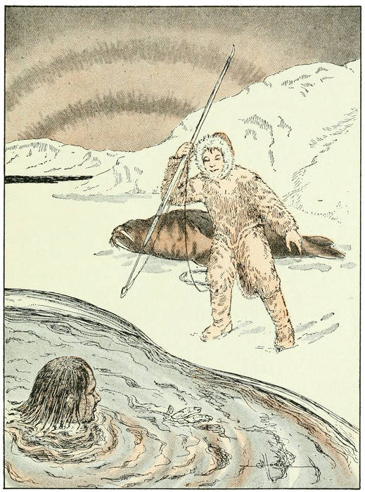 The children ran out into the water as far as they could, calling to their little playmate, but soon she was gone from sight. A sad troop of weeping children ran to Ivango’s igloo, to tell him what had happened.