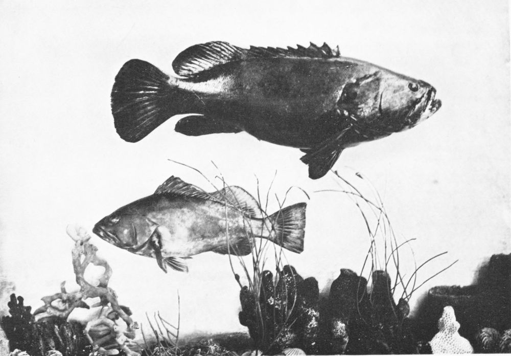 Like most ground-hugging species, the jewfish, once brought to the top, is inflated and helpless. His one hope is in the razor-edges of the coral, and well he knows how to turn these, where available, to account. If he is caught, it is because he has inadvertently wandered far from his natural defences, and cannot risk a sudden haul from above by an attempt to regain them. A ponderous perch-like fish, he is known in many southern and sub-tropical seas, and is a favourite object of sport, like his ally, the grouper, all round the Australian coasts.