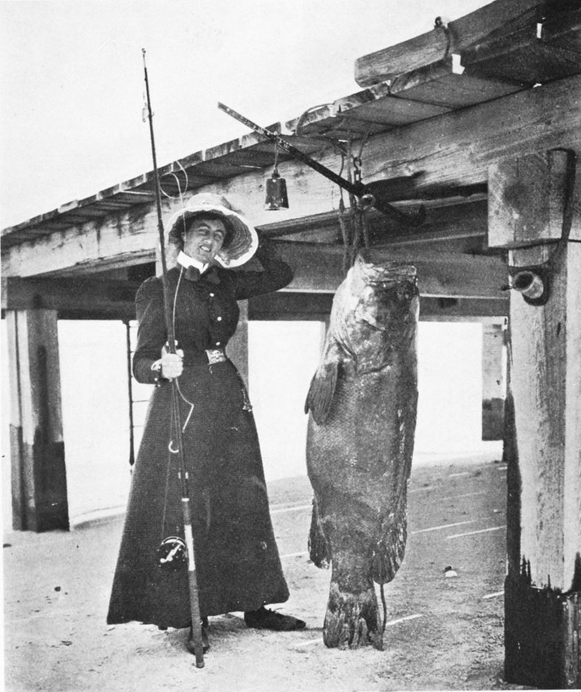 There were many other successful lady anglers. One of these caught and landed a jewfish scaling 137 lb., and this must have called for all her strength, for these jewfish have enormous power of resistance so long as they sulk at the bottom, which they do as if they were rocks. I have watched a man fighting with a 350-lb. jewfish, which he eventually succeeded in killing, though not without a severe tussle, which taxed his patience and his tackle in no small degree.