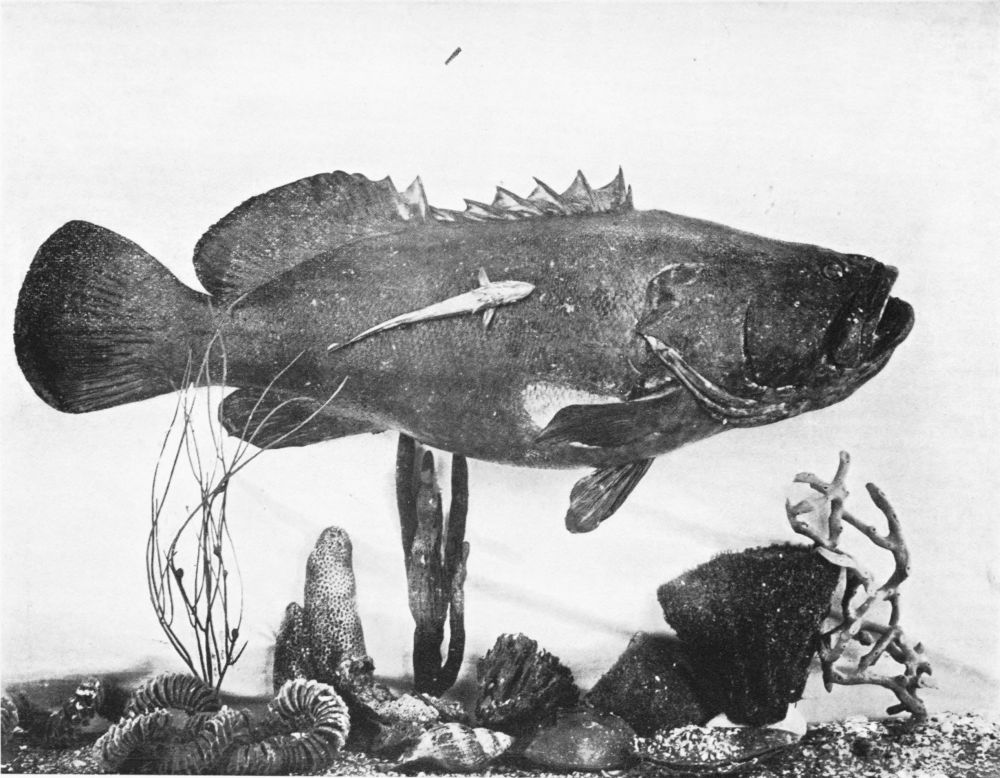 Like most ground-hugging species, the jewfish, once brought to the top, is inflated and helpless. His one hope is in the razor-edges of the coral, and well he knows how to turn these, where available, to account. If he is caught, it is because he has inadvertently wandered far from his natural defences, and cannot risk a sudden haul from above by an attempt to regain them. A ponderous perch-like fish, he is known in many southern and sub-tropical seas, and is a favourite object of sport, like his ally, the grouper, all round the Australian coasts.