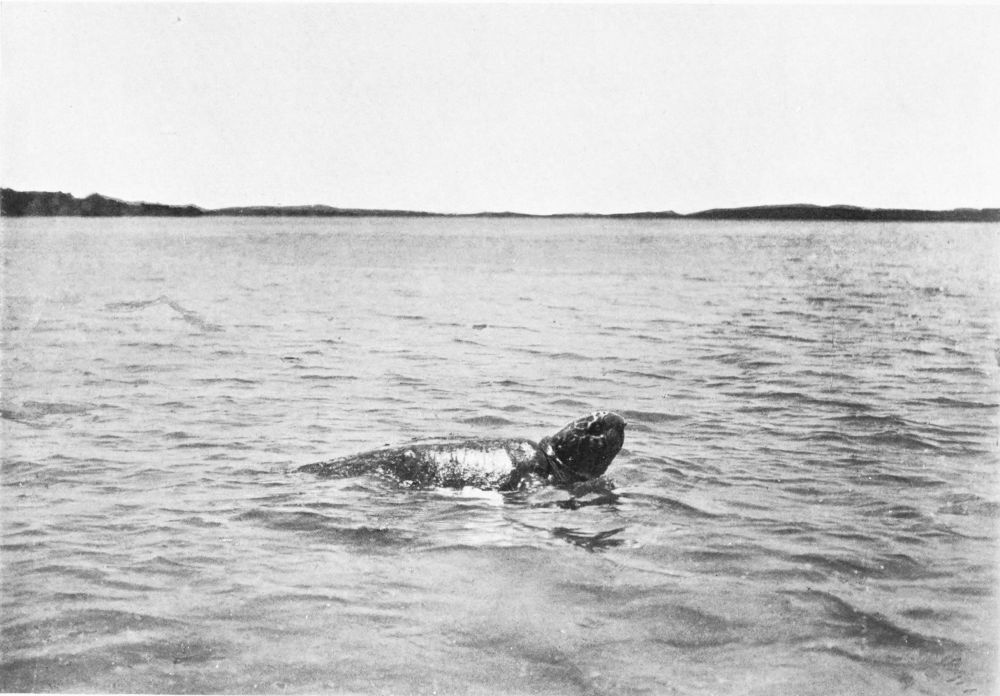 One of the favourite objects of the harpoon in those waters is the loggerhead turtle, and as the procedure differs in some respects from that followed in the pursuit of the unprofitable ray, I will attempt to give some account of the way in which amateurs spear their turtle. If you must catch your turtle before you cook him, you must as surely find one before you can spear him. Turtles are in the habit of coming up for a breather somewhere about slack water, and at such times they may be seen basking lazily at the surface.